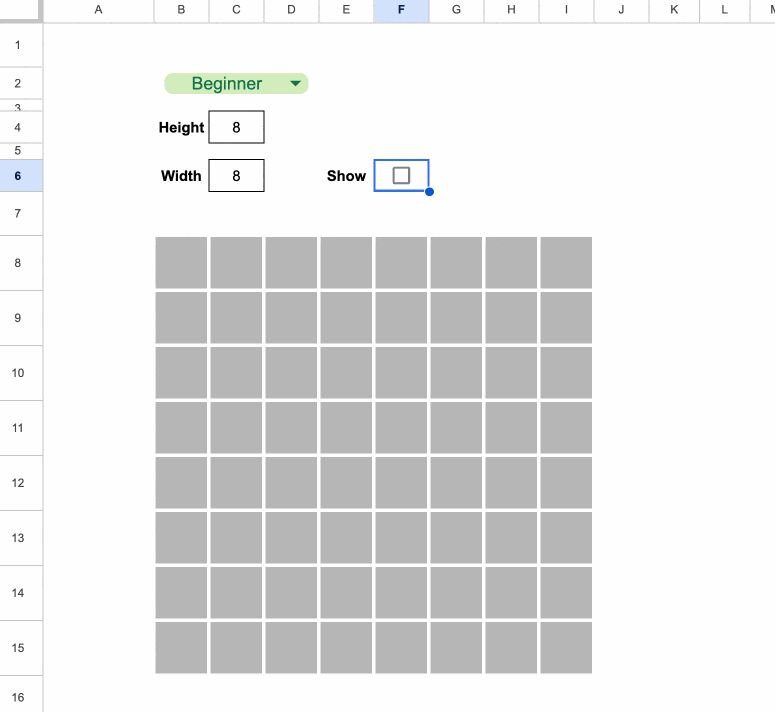 After more back-and-forth with Gemini, where I only directed Gemini and didn’t write any more formulas myself, I had a working demo of Minesweeper: