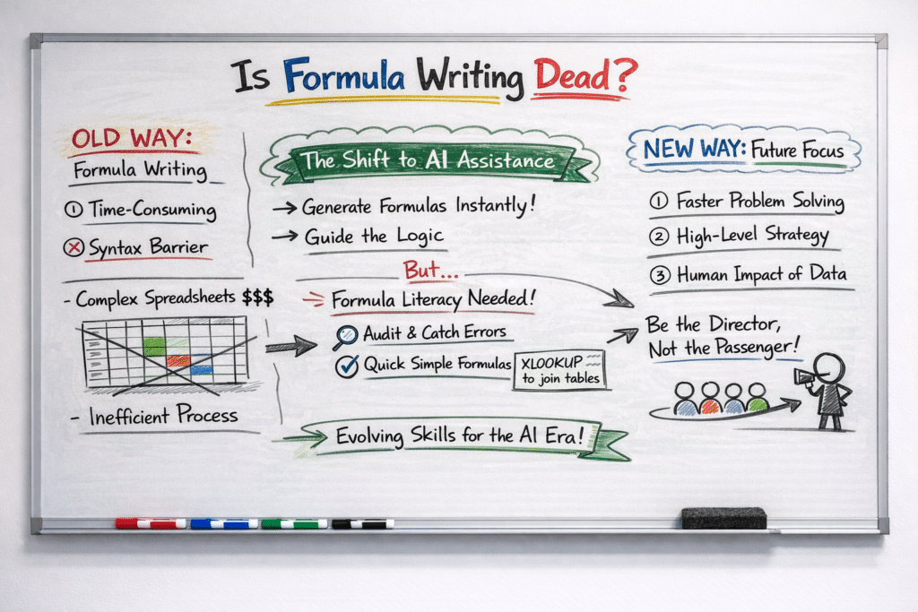 When time is money, writing complex formulas manually does not make economic sense. If it takes you an hour to figure out a complex array formula but only 30 seconds for an AI tool to generate it, then the “hand-crafted” version is no longer a demonstration of skill but instead a waste of resources.