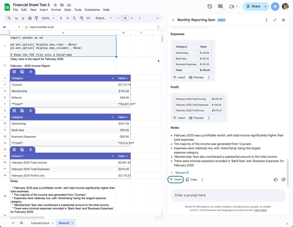 - Accessing Gems in the sidebar of Sheets offers several advantages: 1) it’s seamless because you’re not jumping between browser tabs, and 2) the “Insert” button lets you paste formulas directly into your Sheet.
