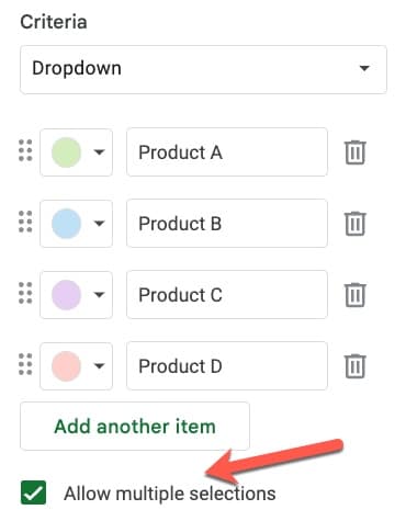 We could try to create all our categories in advance and set up a dropdown with the options. But inevitably, we’ll want to add to the dropdown, and this can be a pain. We have to edit it and then update all the other dropdowns too.
